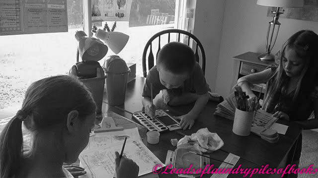 Now, let me share the results of the evolution that has taken place during all these years, from one kid learning at the kitchen table to three now with more of an individual workspace. We flow our activities between different environments in our home, I've learned to be flexible and allow more than one place to do their work: we use the desks to do most of our homework, the sofa to do reading, and our computer desk to work on papers or projects ready to print; also the kitchen is our lab now, and the patio we use for messy projects when weather permits. So as you can understand kids can get weary at home in only one spot, therefore adjusting is always a good thing to keep in mind! If you are like me and love to be neat, my suggestion to keep things tidy is very simple; try to make a habit of enforcing the rule: before they move from one activity to another, kids should pick up whatever clutter or mess they left behind before engaging into a new one. This way everything keeps a place and it doesn't get overwhelming overall in the household environment.